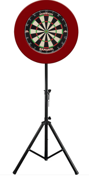 The Portable Darts Travel Stand features: Extremely fast set up – this can be put up and away very quickly once the board has been fixed to the stand – making it the perfect choice for people who do not want a permanent fixture on the walls. Adjustable height for younger players. Please note – Dartboard and Surround not included. Weighs approximately 3.7kg including the box