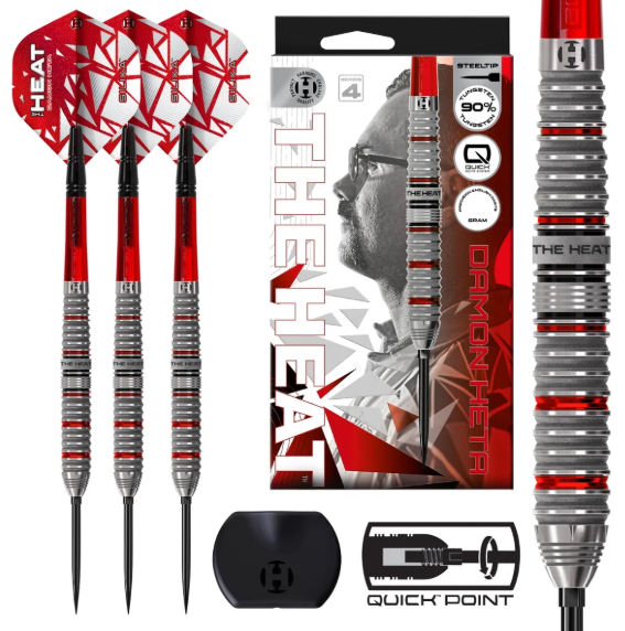 Crafted from 90% premium tungsten, the Series 4 is match weighed to an exacting +/- 0.05g tolerance, ensuring consistent, reliable performance. Available in 21g, 23g, 24g and 25g, these darts come fitted with 26mm Quick Points, Short Red Alamo VS2 Shafts, and new Damon Heta Silika Flights, providing a complete match-ready setup straight out of the box.