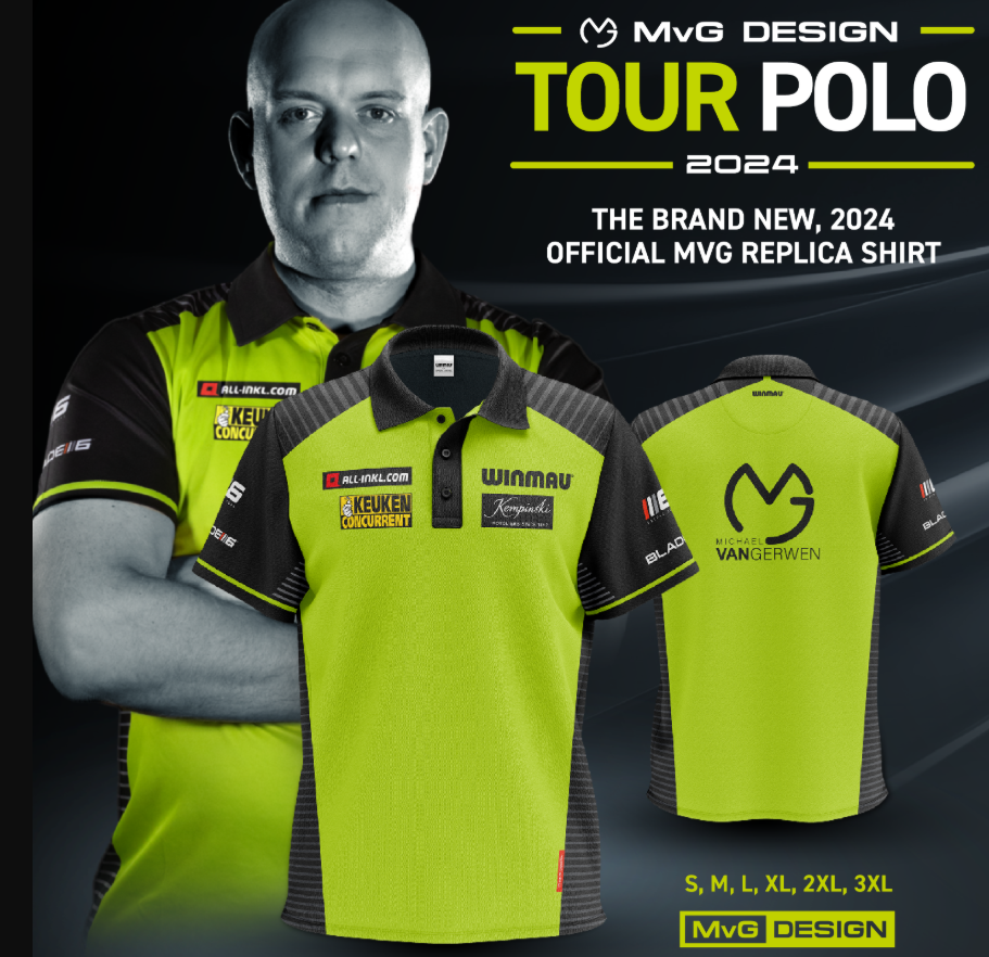 The 2024 Official MvG replica shirt. With the unmistakable “MvG Design” detailing, the latest MvG shirt is designed for optimal player comfort and ultimate style on tour.