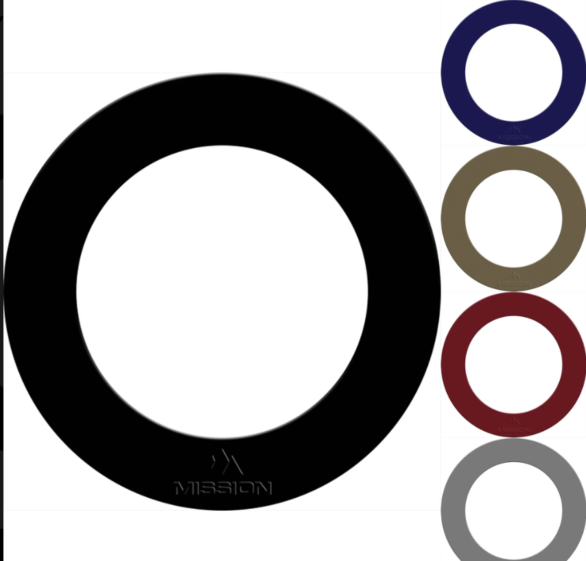 Protect the area around your dartboard from stray darts with a Mission Dartboard Surround. Add some personality and flare to your darts setup with a selection of colours to choose from and all featuring an embossed Mission logo displayed on the surround. These surrounds are made from hard-wearing materials and are suitable for all bristle dartboards. Dartboard not included.