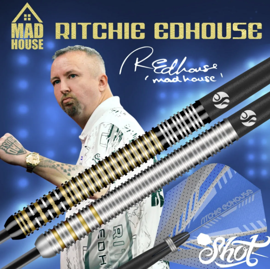 On the stage, Ritchie Edhouse brings the confidence. That self-belief backs up what fans already see: a resilient competitor with serious bottle in high-pressure moments. The Madhouse dart set features precision straight barrels built for pure performance. Shot collaborated with Ritchie to create a custom front-end milling and axial grip pattern.