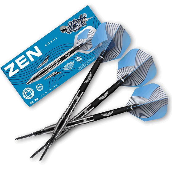 Slice swiftly and silently through the air with Roshi’s 90% tungsten barrels. This sleek, front weighted dart set features a zen-like simplicity and is shielded by a black titanium coating just a few microns thick. Earn respect by achieving pure mastery.
