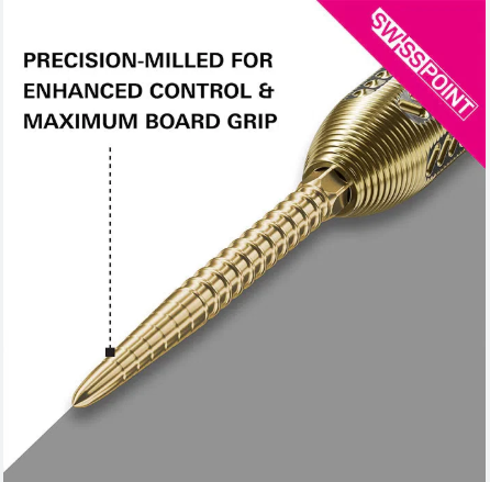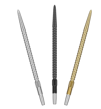Target’s Swiss Chrono Points, designed in conjunction with the Chrono darts, with precision-engineered ridges at the tip for secure dartboard entry, and CNC machined grooves for enhanced finger grip. Swiss Points are designed with a patented locking mechanism, allowing for effortless switching of dart points. The taper and thread technology provide a secure and locked-in position, delivering stability and precision during every throw.