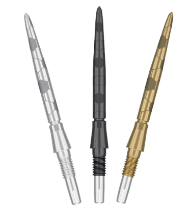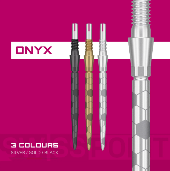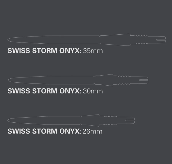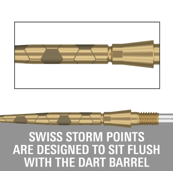 The Swiss Storm Onyx Points combine cutting-edge design with performance functionality for serious dart players. Designed to sit flush with the barrel, creating a seamless transition that enhances finger placement and improves aerodynamic performance. The striking laser-etched hexagonal pattern not only adds a bold visual identity but also delivers subtle finger grip, ensuring enhanced control and confidence at release.