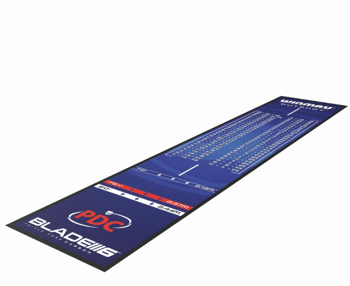 Pro Zone Precision Blade 6 full length soft feel dart mat with integrated raised oche for complete floor protectio